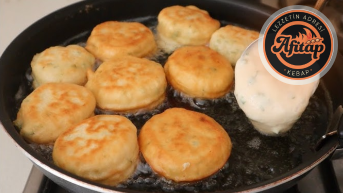 4. Tavanızı ocağa alın ve içine sıvı yağ ekleyin. Yağ ısındıktan sonra, harçtan birer yemek kaşığı alarak tavaya aralıklı şekilde dökün.